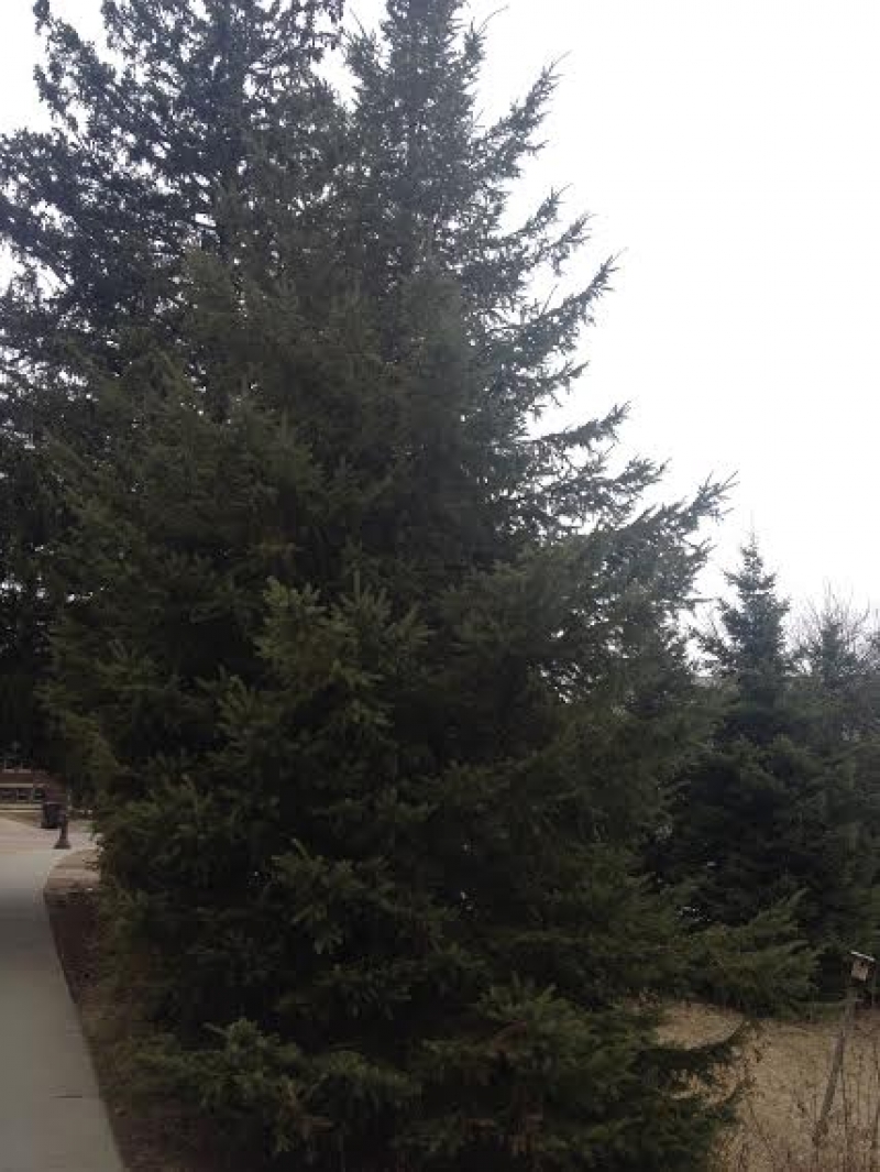 While walking out of the Student Center on St. Lawrence University Campus, I noticed the size of this one tree. I had not paid attention to the location of this tree before - it is very close to the entrance of the Student Center and students walk into its branches when they bough weighed down by snow. St. Lawrence University's habitat is rural and lightly wooded with both coniferous and deciduous trees. The University is unique for its large variety of tree species its relatively small campus. Recently, an arboretum tour has been created and is available for people to see, designed by Karl McKnight. One of the many tree species on campus is a Balsam Fir, which is depicted here. The Balsam Fir can be found in North America, in the northeaster part of the country, and also in Canada. These coniferous trees grow typically 14-20 meters high.