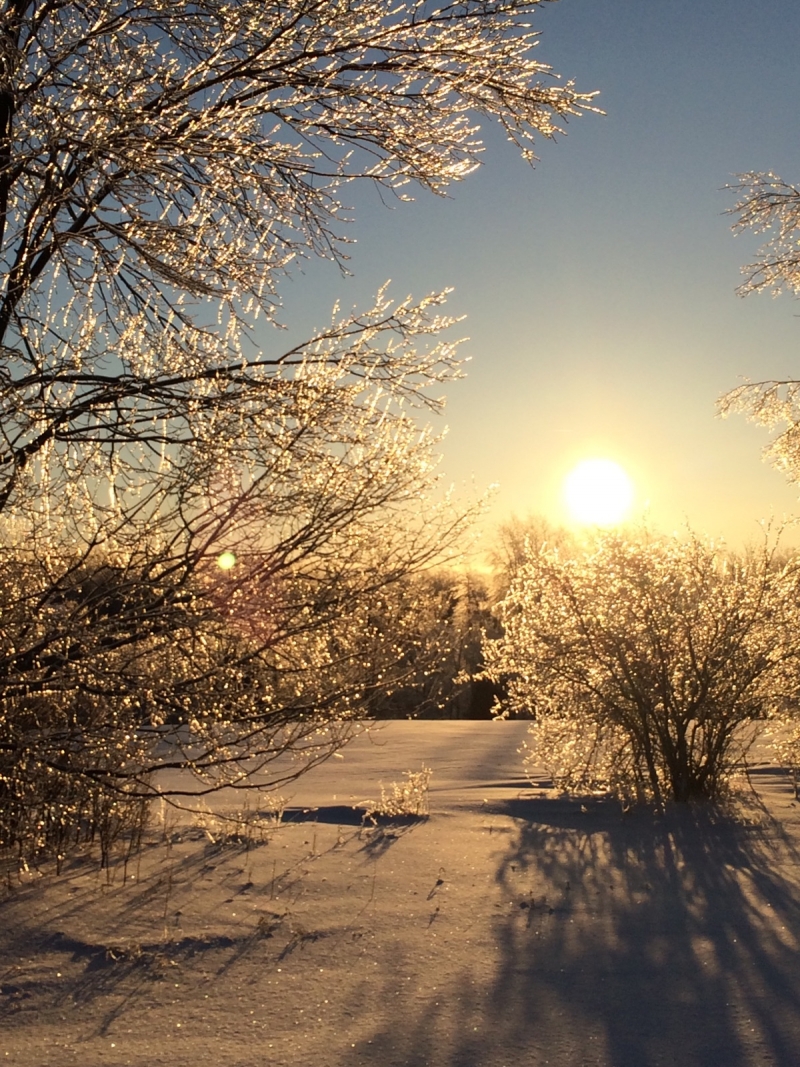Getting up at sunrise pays off. I saw this out my window, grabbed my camera,and ran outside without a jacket in order to capture this picture before the sun rose too high.