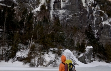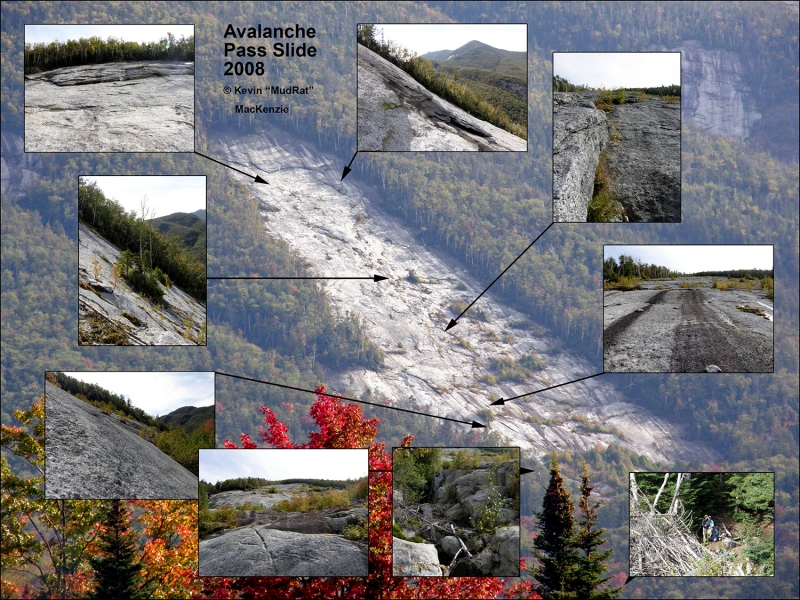 If you've gone to Avalanche Pass, you've walked directly under this slide created in 1999 by Hurricane Floyd. Keep in mind that skiing/snowshoeing is strictly forbidden. Triggering an avalanche here would put anyone on the trail below in jeopardy. For the full trip report and pictures see the "Slides and Bushwhacks" page at http://www.mackenziefamily.com/46/46r.html