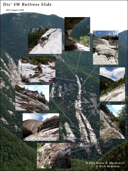This was part of a 4 slide route on Dix Mountain on a perfect summer day. This slide was created in 2011 by Tropical Storm Irene and is more of a rock climb than typical slide climb.