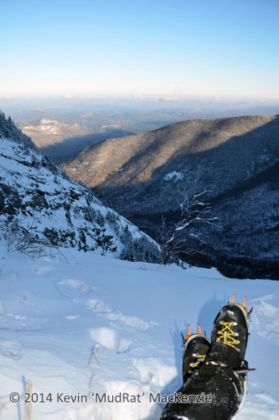 Some days are memorable because of the challenges we experience. Perhaps it’s the harsh conditions or something internal we’re battling. Other days are simply perfect. Our climb last Sunday was the latter. Weather was around 10 degrees, skies were cobalt blue and the conditions on the great face of Giant Mountain offered plenty of ice (up to WI3). The sunset we witnessed surpassed any I’ve seen—better than Mallory Square in Key West, better than the beaches of FL (and they can be good). Clouds rose from the valley and diffused the light while we lounged and watched them blow across the ridge. Then darkness settled enveloped us as we descended...a relaxing end to the adventure.