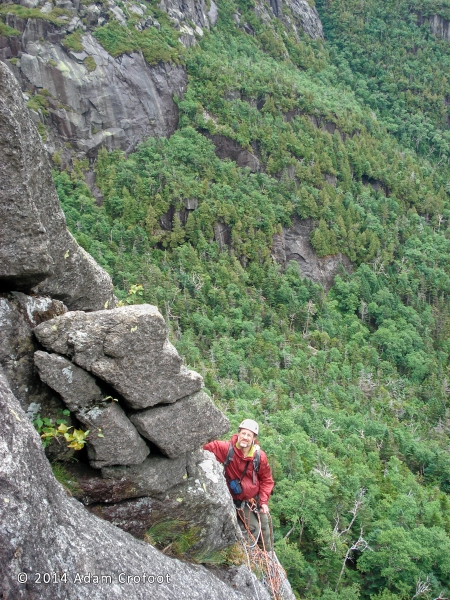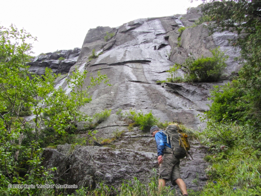 We had our hearts set on putting up (creating) a couple new routes one or both sides of the gorge. We were aiming high with our primary focus centered on Mt. Marcy’s Agharta Wall—the cliff about 1/8 mile north of the East Face and Grand Central Slide. A free-standing pillar at the mouth of the gorge on the Haystack side was a secondary goal if time allowed.