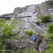 The Agharta Wall has a huge scoop missing at its south end, a beautiful and dramatic feature that’s a testament to gravity and the elements. The missing stone makes up some of the talus that Anthony Seidita and I crawled under earlier in the summer. Adam and I noted a line along the right side of this. It looked like a series of flakes and cracks that might allow access to the upper wall. An close inspection is a far cry from studying a photo; it’s difficult to tell the characteristics of a feature until you’re in the arena. I knew this would be the most challenging climb of my ‘career’ as I looked up our proposed line. I reminded myself of all the reasons that I thought this was a good idea!