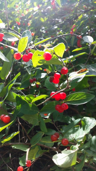 The red berries look like bush honeysuckle. Nice shots, love the leaf shadow!