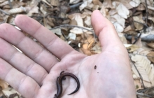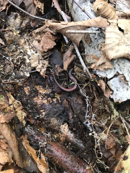 Warm sunny day in Glenmean State Forest, Pierrepont, NY. This salamander was found underneath a decomposing log.