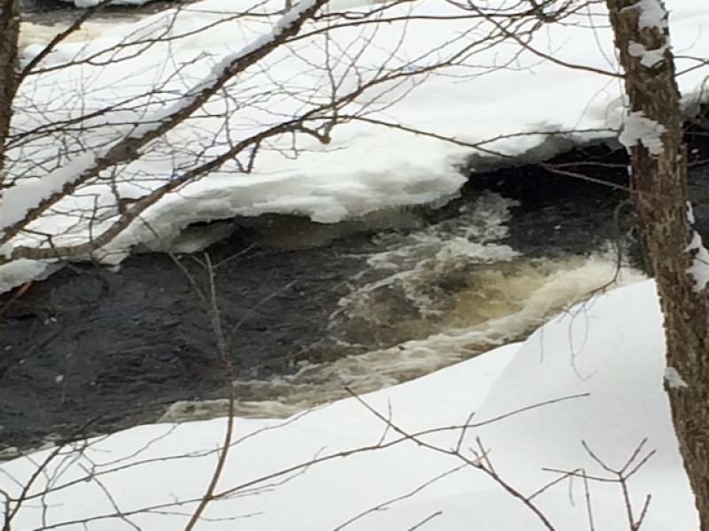 Natural History Info: The brownish foam emitted from the water is probably some mix of sediments from the riverbed as well as salt and other washed away run-offs from human interference upstream. This mix also probably helps to keep the freezing point of the river considerably lower, as well.
