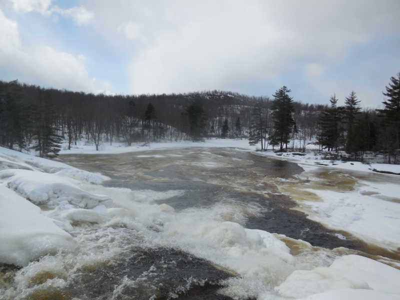 (landscape) Lampson Falls – This landscape at Lampson falls in Clare, NY gives a sense of the river and the forested background. This picture does a nice job of allowing you to see what Lampson falls is all about, with the river, but also gives you an idea of what the rest of the area is like with a glimpse of the elevation change in the background. Lampson falls is one of the more popular falls in the area, and there are a few different options of trails to take while there. The falls are about 100 feet in width and 40 feet high.