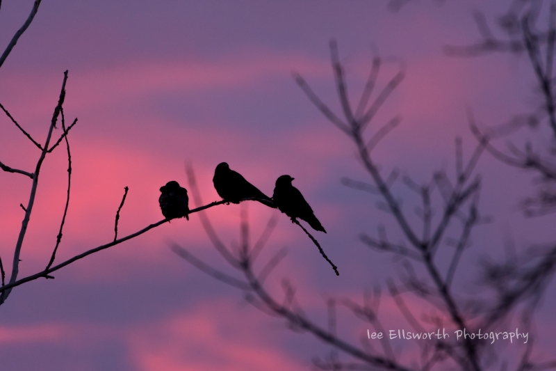 Crows roost in large numbers in the City of Watertown. In late afternoon Crows start flying into Watertown from daytime foraging areas. They form small flocks in tall trees around the city. just before sunset they all take to the air and fly into the roosting area for the night.
