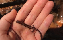 A pickerel frog (Rana palustris, adult) found next to a fast moving stream at Glenmeal. Pickerel frog are easily confused with southern leopard frogs (Rana sphenocephala), but pickerel have more rectangular/squared spots.
