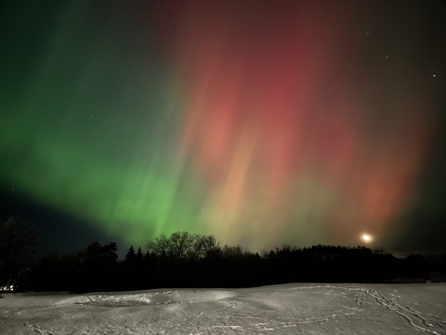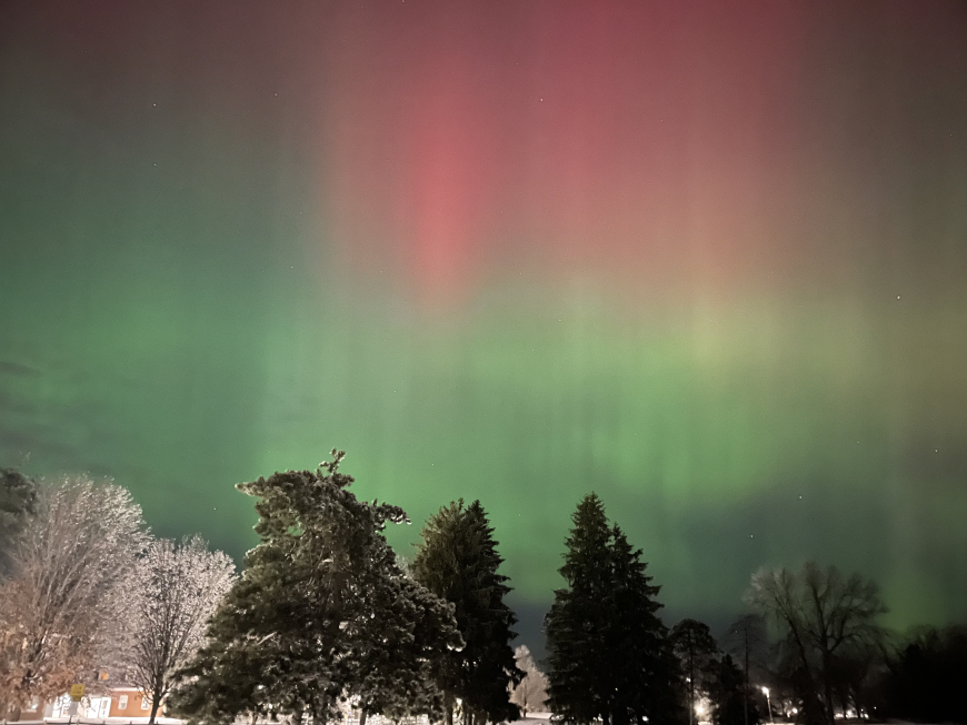 The sky put on a brilliant show tonight! The Northern Lights were very strong over the SLU campus tonight. I went to the golf course where there's less light pollution and was just in time to see the build up and peak of the colors. This is the second fall season in a row that I've been able to see the Northern Lights at SLU! A truly special encounter.