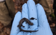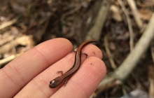 The day was rainy, cloudy and overcast, and around 50 degrees Fahrenheit. The time of day was around 2:00, and I was herping with my Herpetology class for lab on the Kip Tract trail by St. Lawrence University. This Lead-Back was under a soft, rotting log that I had overturned.