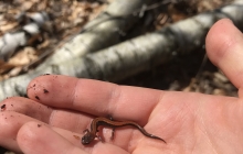 The day was overcast, with some spotty sunshine. The temperature was about 50 degrees Fahrenheit, and I found this Red-backed salamander under a rotting log while herping with some classmates at Highley Flow State Park.