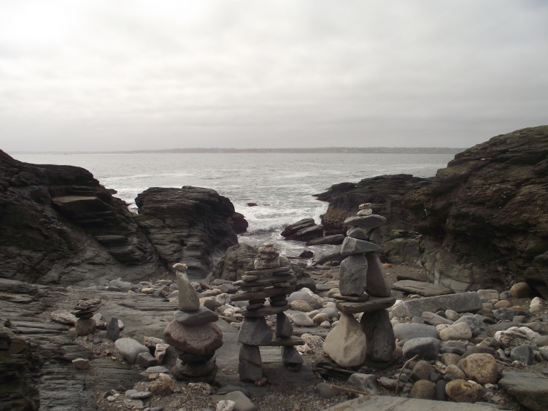 This is a landscape photo of an adventure I took last year with my friends near Alexandria Bay. The bay is on the South Bank of the St. Lawrence River in the Thousand Islands. It's a popular tourist destination because of man-made attractions like Boldt Castle, but also because of the vast expanse of undeveloped, natural land. I chose to capture this image because it represents this duality of both man-made and natural attractions in one place: the rock structures, created by the hand of a previous visitor, combined with the beautiful, natural scenery of the St. Lawrence River.