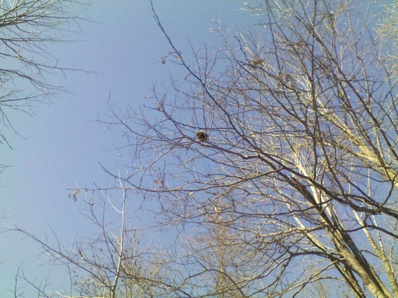While nature-walking through the St. Lawrence University woods, our group saw a porcupine high up in a tree. Porcupines are the second largest rodents in North America. In the cold winter months, they eat leaves of evergreen trees as well as the inner bark of trees. They are very common over most of the U.S. I had to take this photo because, although I've lived in or near the North Country for most of my life and am no stranger to the Adirondack woods, I've never before seen a porcupine! At least, if I have, I didn't know it; it's easy to mistake a porcupine that high up in a tree for a bird's nest of some kind.