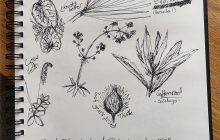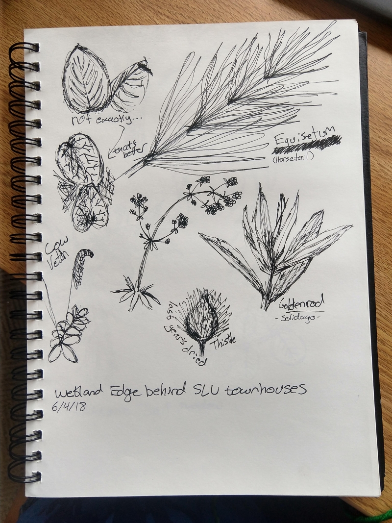 Drawing is a great way to appreciate all the different shapes that leaves and plants come in -- here are a few of the ones I noticed at the edge of the wetland near the St. Lawrence senior townhouses.