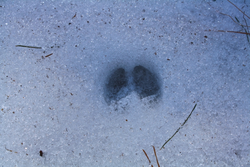 What I found interesting: the snow was very compact and hard that the foot print of the deer really stuck out, I found that to be very neat.