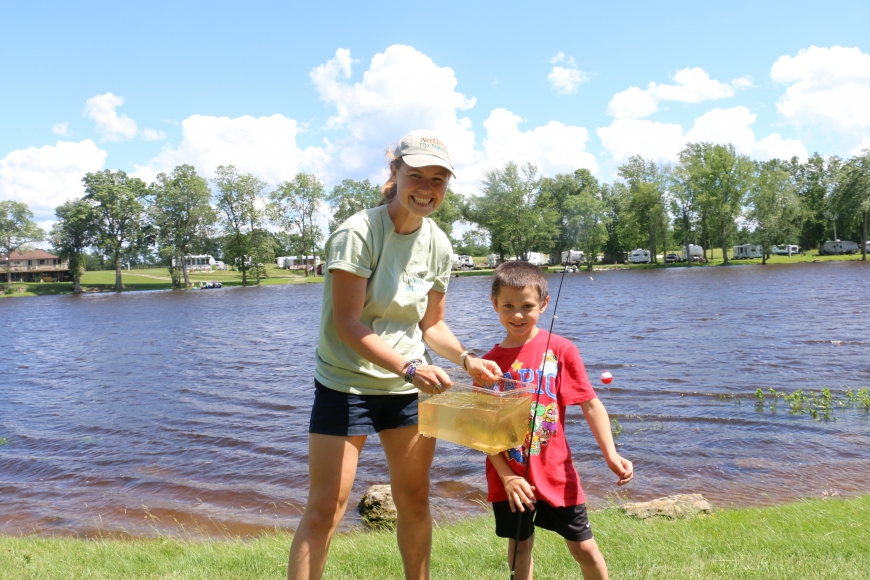 The Nature Up North team was joined by a group of youngsters at Eel Weir State Park for a fishing workshop on a beautiful summer day. The little anglers hooked some rock bass, yellow perch, and sunfish using worms as live bate on open-faced reels.