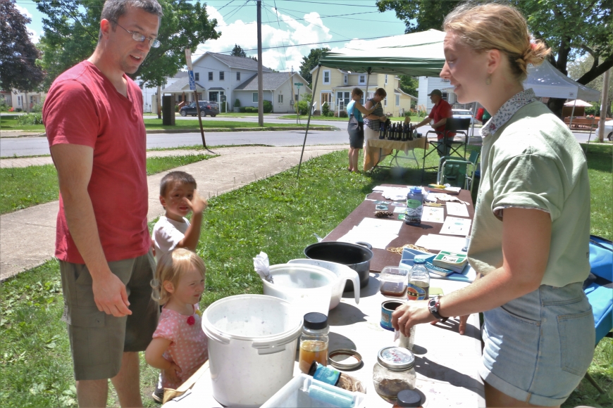 We had a wonderful time celebrating the Fourth of July at the Canton Farmer's Market! Our natural dye table attracted visitors of all ages, who dyed handkerchiefs and tee shirts with natural dyes made from local plants. Vibrant hues of blue, green, burnt orange, and pink will hopefully be floating around the village of Canton soon!