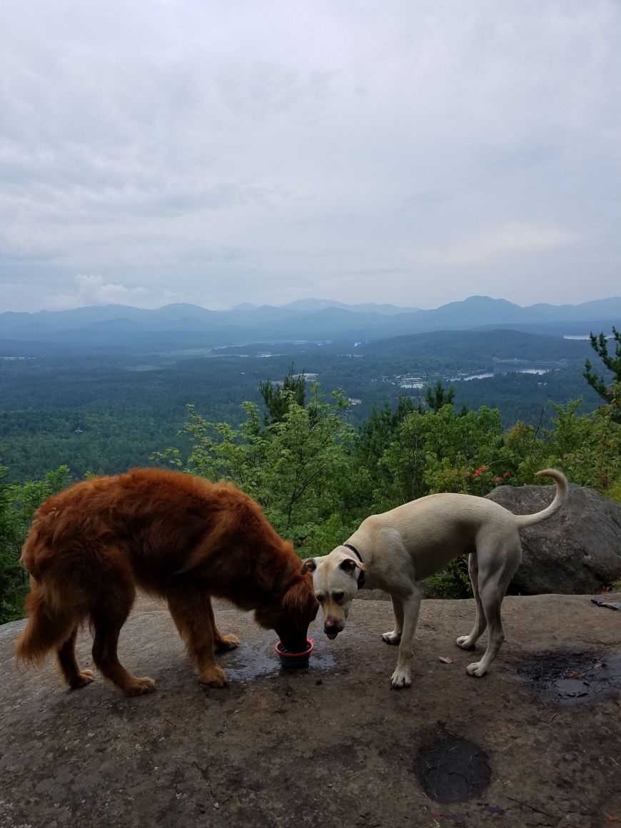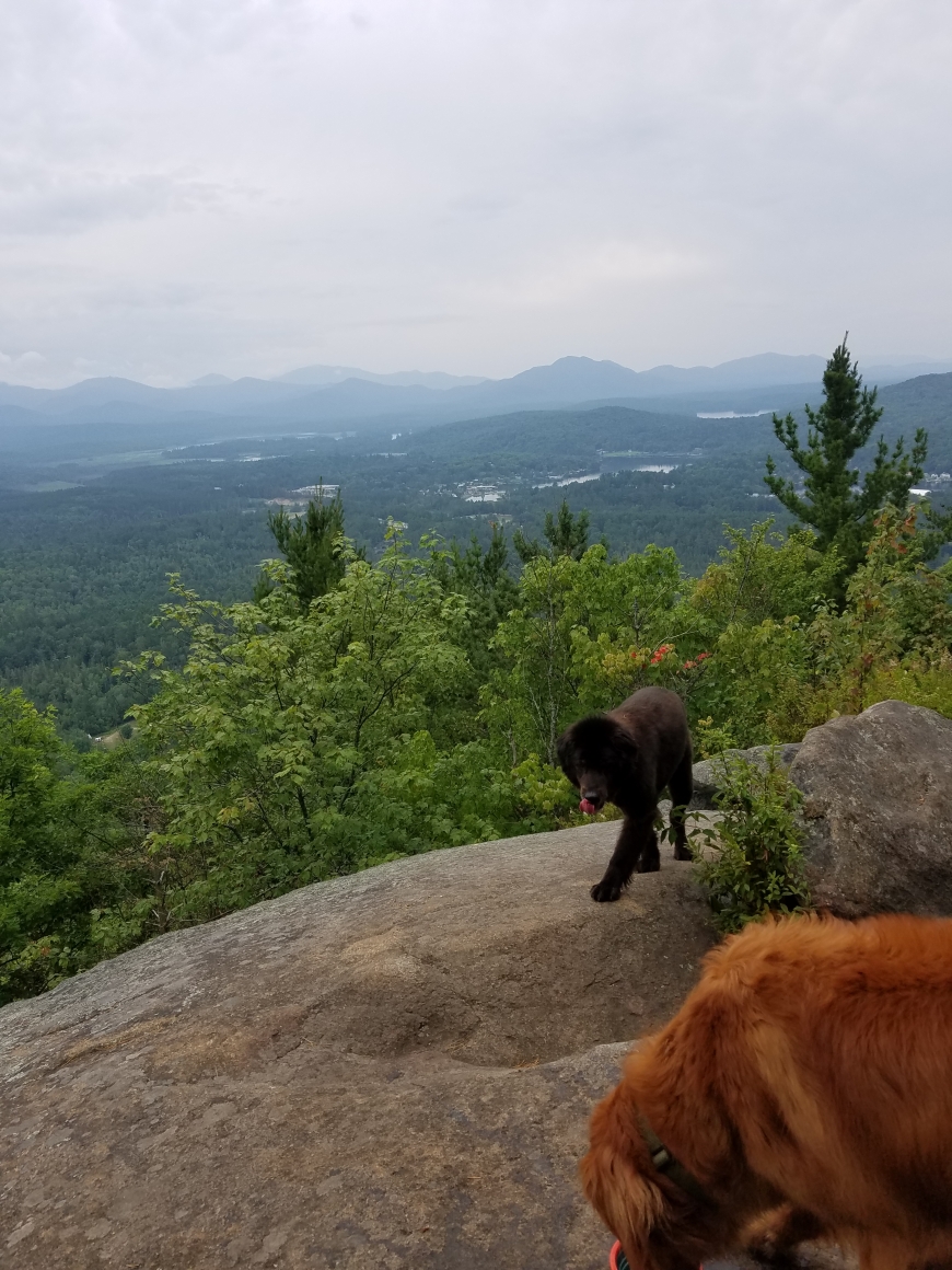 Humid hike up Mount Baker, .9 up .9 back perfect for my elderly dog Cormack (11yrs) to the youngest member of the pack Vader (1.5 yrs). Beautiful views of Saranac Lake and the surrounding High Peaks.