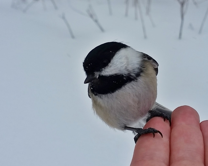 The chickadees were everywhere while I was out on The Nature Center's trails; they even landed on my dog! I felt guilty because I didn't have any seed with me!"