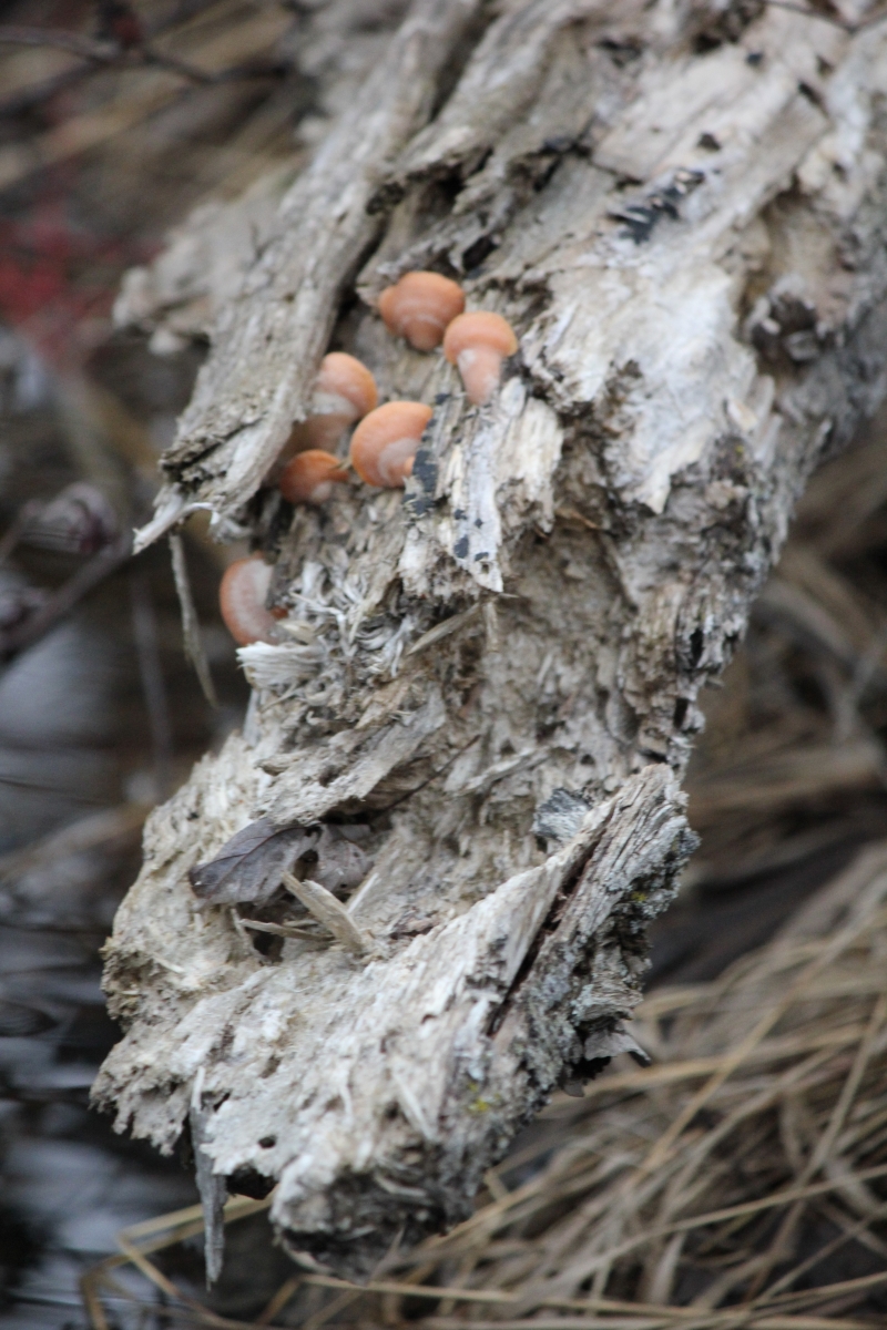 Walking by a small stream on a gray, April afternoon, I finally noticed some color that wasn't bland and dark. These bright orange mushrooms stuck out on the end of a dead log protruding over the stream. Mushrooms are a fungus, and like moss, they use spores for reproduction. Mushrooms tend to grow right out of their food source, which is why these guys are feeding off the nutrients from the dead log.