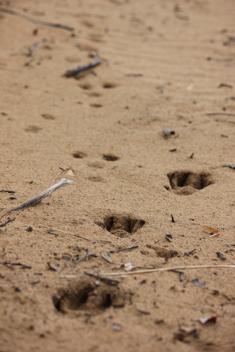 In the sand in some woods by power lines, canine footprints are captured trailing the prints of a cottontail rabbit. I followed the trail of their footprints for probably about 200 yards, when eventually the prints led into some grass that was too compact to have prints in it. Following the path, it seemed like the chase was a wild scramble resembling a roller coaster ride. This is because when a cottontail rabbit is being chased by a larger predator such as a dog, it uses it's size to change directions quickly and lose the predator coming after them. I was never able to figure out if the rabbit got caught, but seeing the remnants of this epic chase was really cool.
