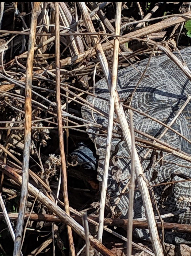 This was not my personal encounter, but I am grateful to have permission to share. Students from the Sustainability Program located this lovely wood turtle (Glyptemys insculpta) near the small river at the farm, they were unsure of the identifiation but didn’t want to disturb it as they thought it may be nesting. They did get this awesome photo and you can clearly see the highly sculpted shell that is characteristic of Wood Turtles.