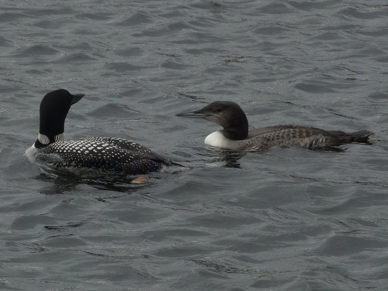 Mother Loon and this year's addtion, about 2 months old. Father was close by diving for fish.