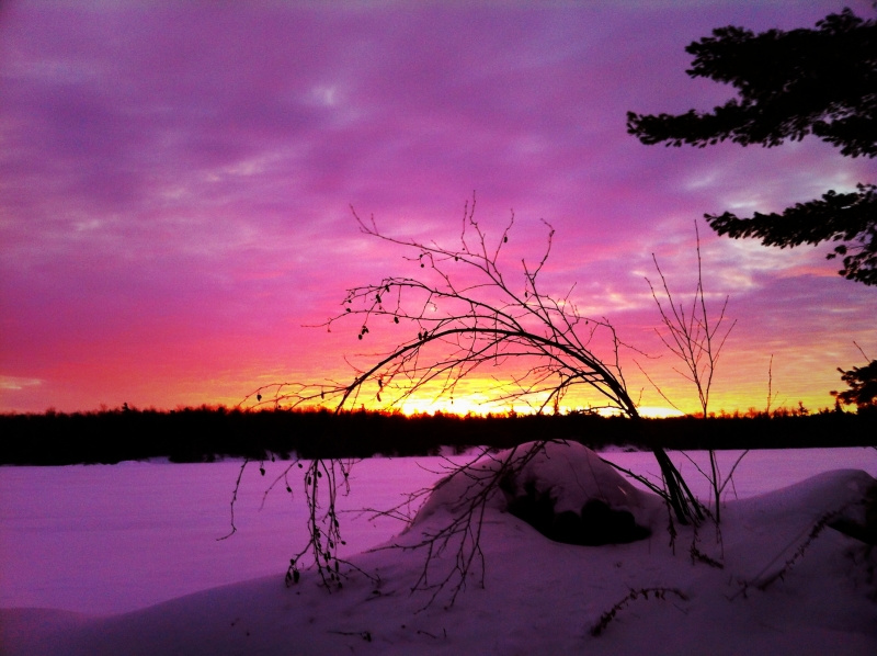 Winter brings us all kinds of frozen precipitation. This poor birch had more freezing rain than it could bear as it watched the winter sun rise after the storm.