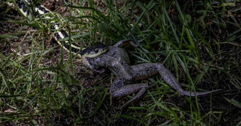 The Photography Club at the Nicandri Nature Center meets monthly, and when we were walking a part of the trail quite close to the Center in mid-July, we came upon this scene. The frog was still alive, and the snake was busily digesting as much as possible so it could slither off to enjoy the rest of its meal. In the meantime, we were able to get some pretty good shots. Although this is nature, it was still difficult to watch.