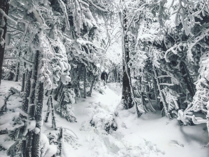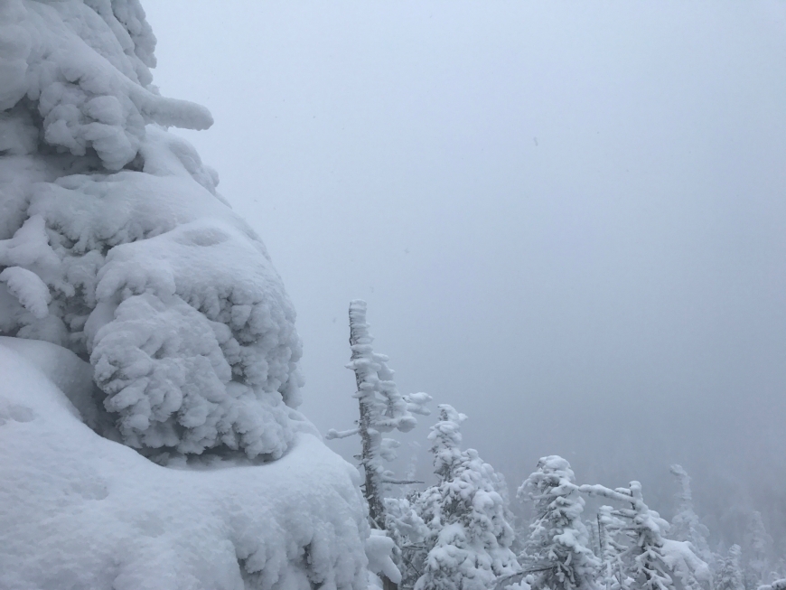 After all the fresh snowfall in the Adirondacks this past week I was excited to get back into winter hiking even though it's not quite winter yet. I decided to take my mom up McKenzie Mountain, 3,861-foot peak in the 36,200 acre McKenzie Mountain Wilderness area. We took the Jackrabbit ski trail, 6.8 miles roundtrip and were surprised with over a foot of snow on the trail at some points. There was no view at the summit due to clouds, but the beautiful snow covered trail and trees, made the trek worthwhile.