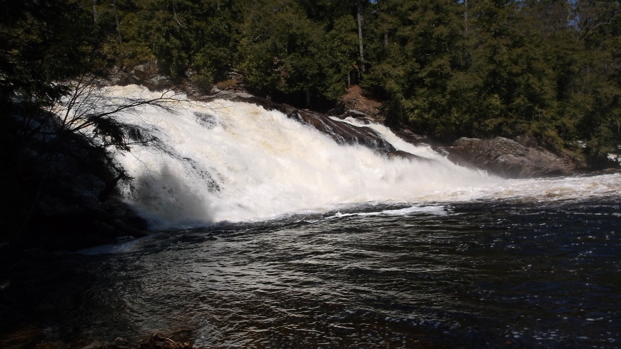 A short hike to the falls but requires some scrambling up and down some hills.There was a second waterfall behind the main one but the hill there was a little on the wet side so I didn't attempt it.The water seemed high but it looks as though it is possible to walk farther along the shore in different seasons.I'll have to try again this summer.