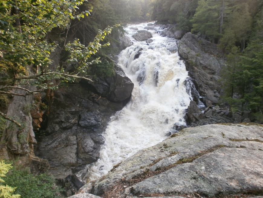 It's right behind Wilmington Notch NY state Campground if you don't want to camp there they do allow you an hour to see the falls for free I believe. They also have day passes for picnics if you don't want to camp there.Should you decide to camp there just remember to bring your own soap and paper towels for bathrooms as they aren't provided.I have to say it was nice listening to the murmur of the river as you sleep. and yes this is the Ausable.