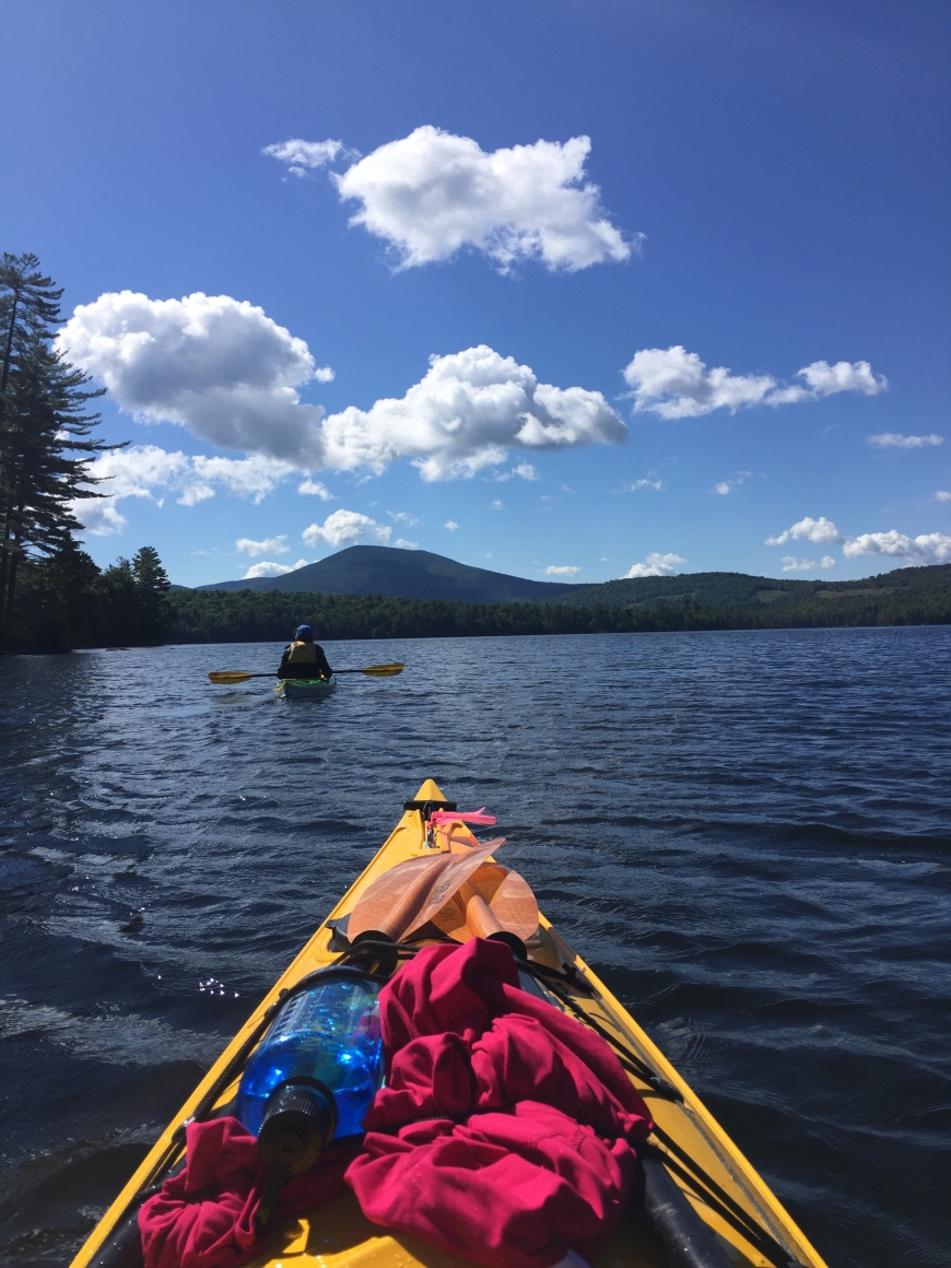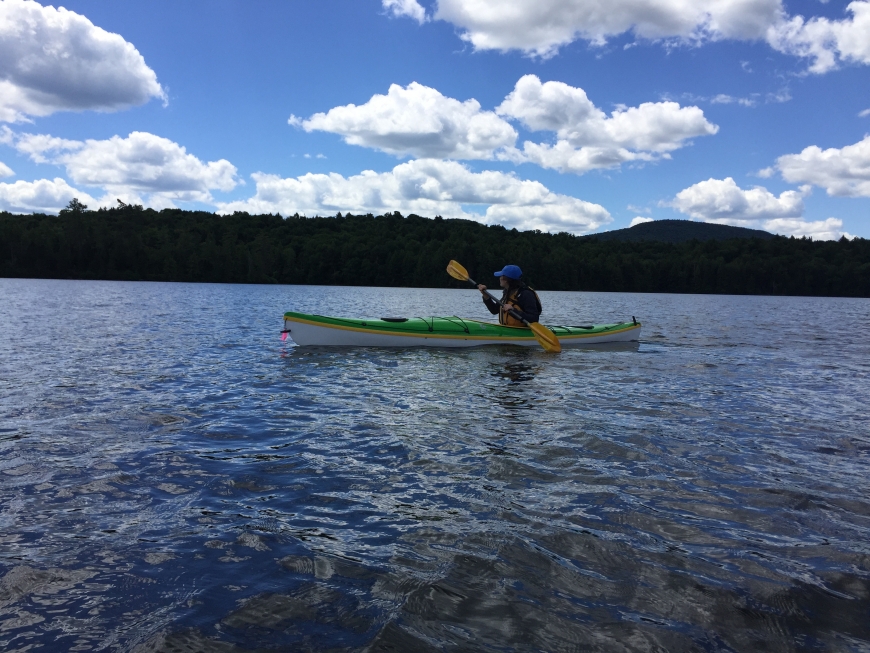 South Pond - Loon exploring the entire water expanse - north, south, east and west! - Osprey calling from up high in their treetop nest. Three canoeists - Page, Dylan and Ryann - join their Dad, Connie Perry and friends.