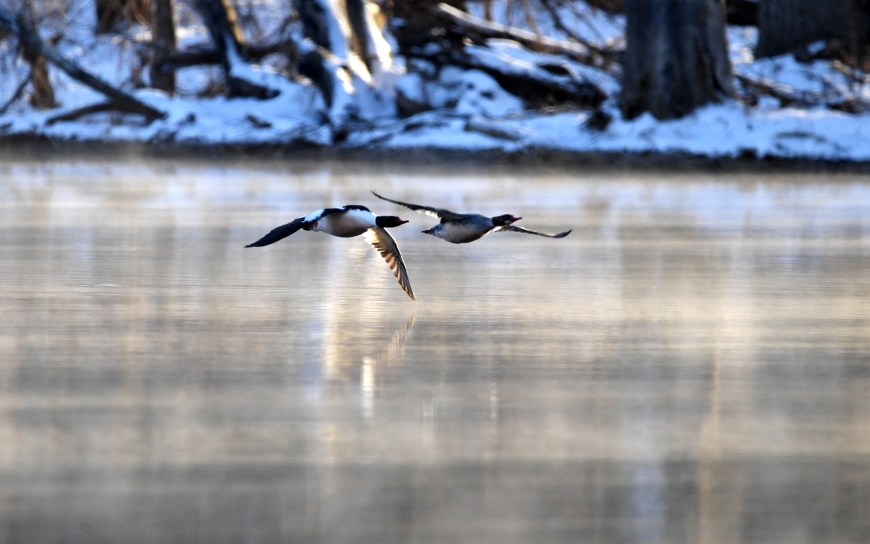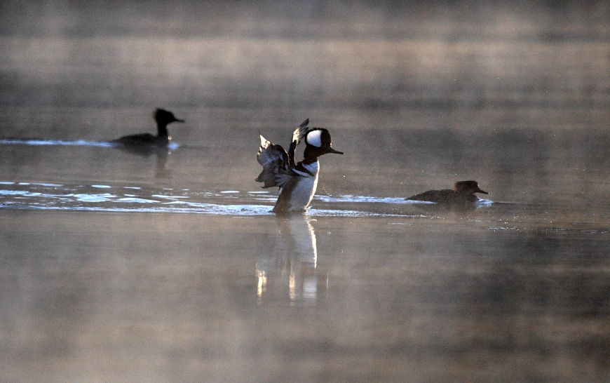 Among the ones that came by were Mallards, Wood Ducks, Common and Hooded Merganser and a Pied Billed Grebe.