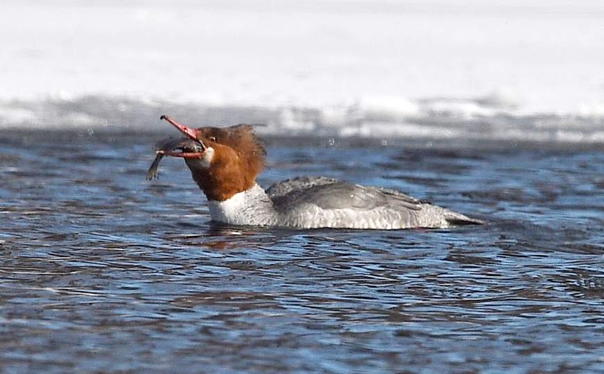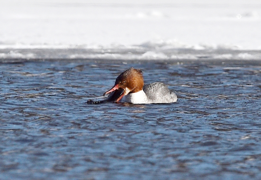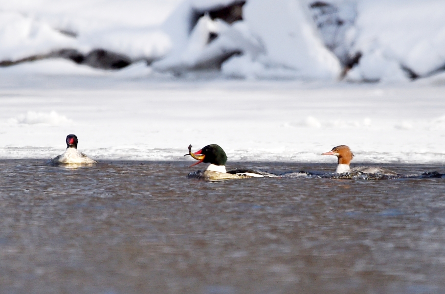 A group of common merganser have made this section of the Oswegatchie their temporary home for the past few weeks.