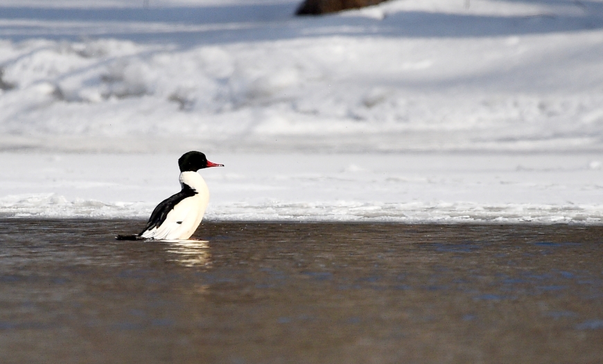 They don't like when I go out there, and they will swim downstream immediately, but I decided to stay wait them out, and despite it being around 20 degrees it was worth it. As they did make their way back and as I laid in the snow, they swam, dove, ate and chased each other for the next hour.