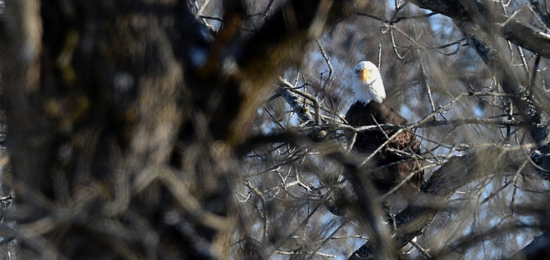 With the Upper and Lower Lakes frozen over, the section of Oswegatchie bordering it has become a hunting ground for this Eagle.