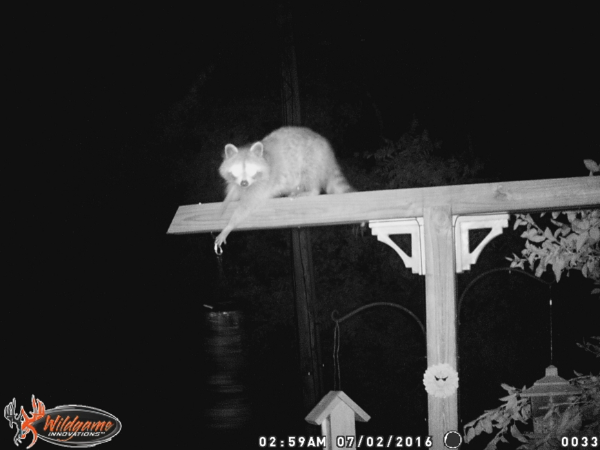 This is a tricky raccoon that liked our birdseed and was feeding his family after he got it.