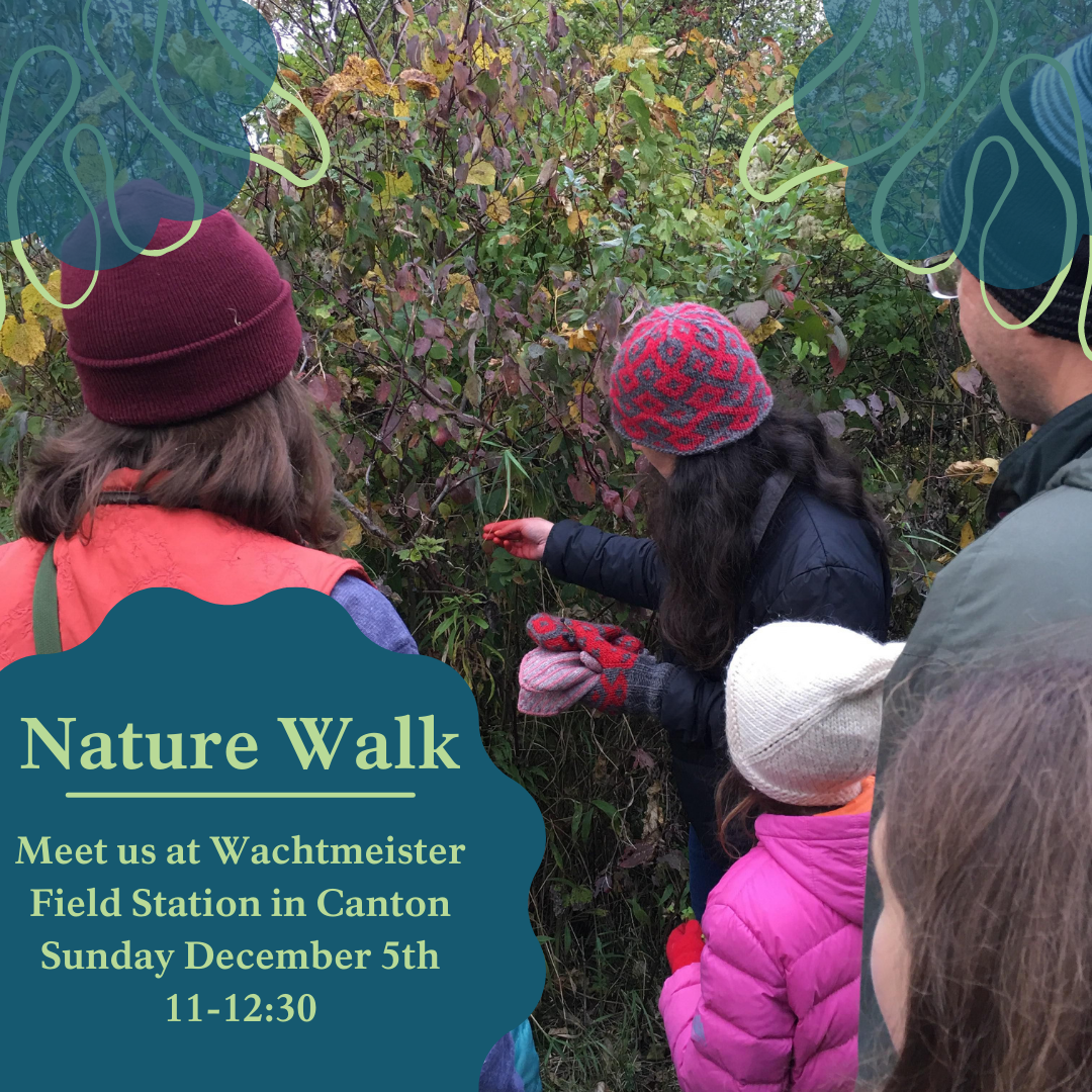 The hike will take place Sunday, December 5th from 11am to 12:30pm. We will meet at the Wachtmeister Field Station at 11am to begin our adventure. Please RSVP to info@natureupnorth.org or by contacting Nature Up North on social media (@natureupnorth) if you plan on coming. Can’t wait to see you there!