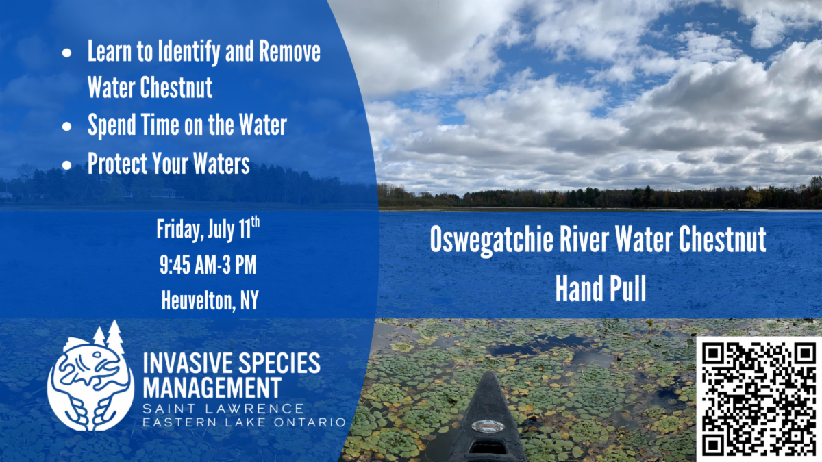 Make a difference in your community by joining a volunteer effort to remove water chestnut from the Oswegatchie River near the Village of Heuvelton on Friday, July 11th, from 9:45 AM to 3:00 PM. z