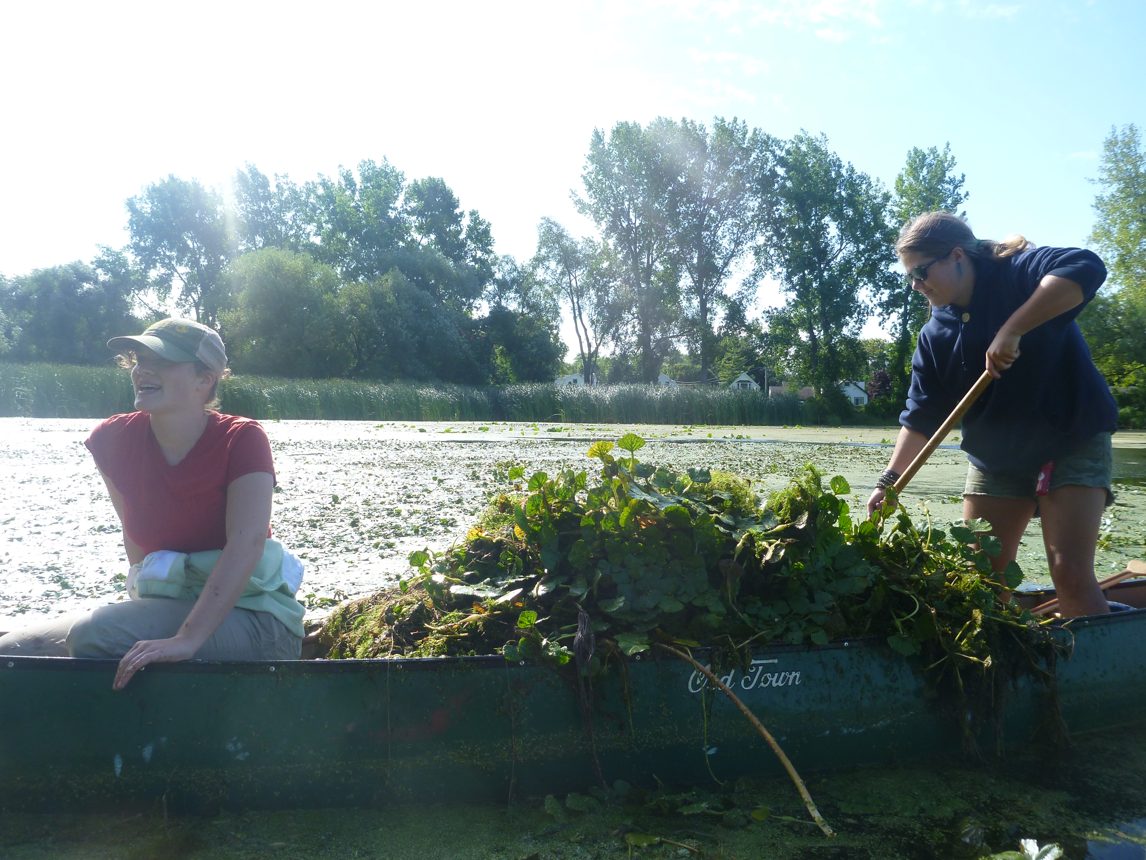 Learn the skills to survey your favorite water body or landscape for invasive species. this 35 minute session will teach you how to identify common invasive species along with the skills to survey your favorite water body or landscape. Session begins promptly at 8:30-9:30 AM; followed by a 2 hour volunteer activity where we will canoe and or kayak the Salmon River Estuary (West end) to survey for the invasive plant Water Chestnut. Participants will "hand-pull" the plants and return them to shore. Participants will then be engaged in an actual monitoring event from 9:15-12 PM where collected Water Chestnut will be weighed and data collected.