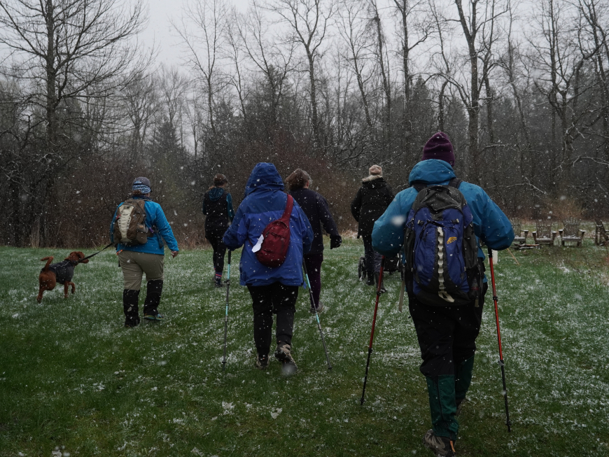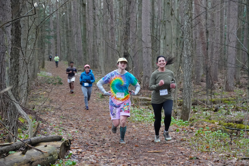 With over two dozen participants in this year's race, we were able to raise over $500 for environmental programming in the North Country! These funds will support Nature Up North's ability to provide k-12 after school education, community events like our summer paddle and campfire series, community science projects, and more. The North Country community demonstrated what generosity, grit, and passion look like this past Sunday. With the course starting amid falling snowflakes on the flooded Kip Trail, participants got to see first-hand what it truly means to be a "flooded forest" after a fast-melting snowpack was followed by consistent rains through early spring. After our participants navigated the Kip Trail, they were rewarded with much drier trails as they entered the Saddlemire Trail on their way back towards St. Lawrence University. Avoiding the 9th tee and bearing left onto the Avenue of the Elms, the end was almost in sight! Runners and walkers dashed through campus, turned left onto Park St., crossed the Little River, and returned to the finish at the Wachtmeister Field Station.