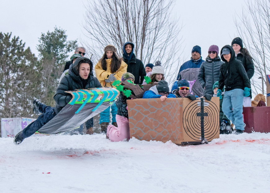 For more photos see North Country Now's Slideshow. Thanks to the Canton Chamber of Commerce, SUNY Canton, and SUNY Canton EMS for collaborating, and thanks to all of the cardboard sled racers that came out and showed off their creativity and speed! We can’t wait for next year's race!