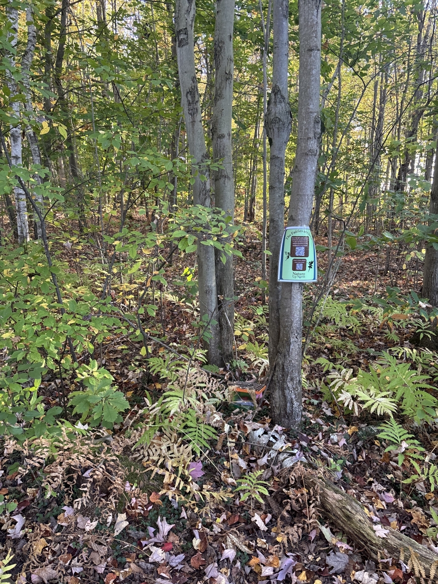 Thimble and Blossom are back on North Country Trails this fall! While they're waiting to migrate south for warmer weather each winter, Thimble and Blossom stop over for a couple of months on our trails to enjoy the fall foliage, tuck in the bears for hibernation, and to answer all of your nature questions! They stopped by Nature Up North to tell us how excited they are to see who can find their homes and to deliver their clues. Visit one of the trails below and follow their clues to find where Thimble and Blossom live! Write a question in the notebook, or scan the QR code on the sign to fill out our form. Thimble and Blossom only hang out until the first sign of snow, so don't wait too long to go looking! The photos are in the same order as the trail clues below.