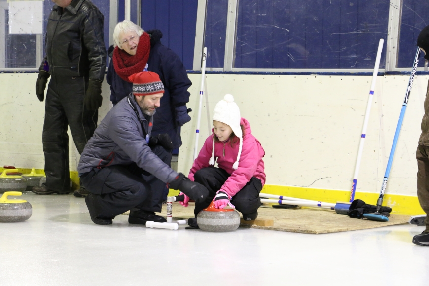 Grandmother and granddaughter learning to curl. Photo: Jane Eifert