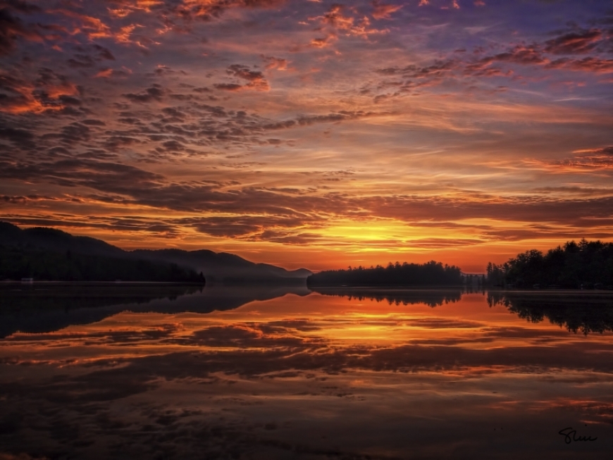 Sunrise on Alger Island, Fourth Lake. Photo: Sherrill Barlow