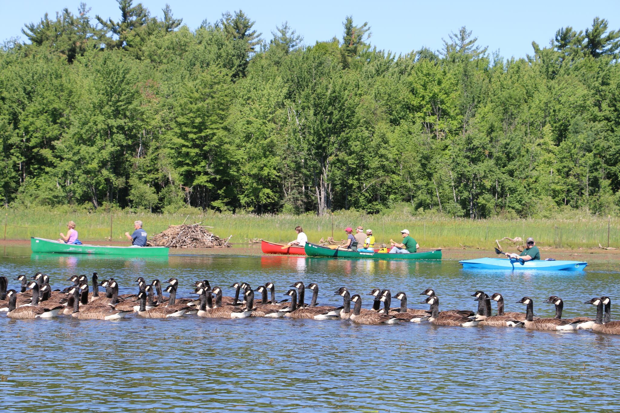 Every summer a roundup reminiscent of old western cattle drives occurs at the Wilson Hill Wildlife Management Area in Louisville. But there are several key differences -- rather than riding horses, the “cowboys” paddle canoes and kayaks, and rather than cows, their quarry is Canada geese. And rather than the open range, this roundup occurs in a shallow, expansive, cattail-lined wetland near the St. Lawrence River.
